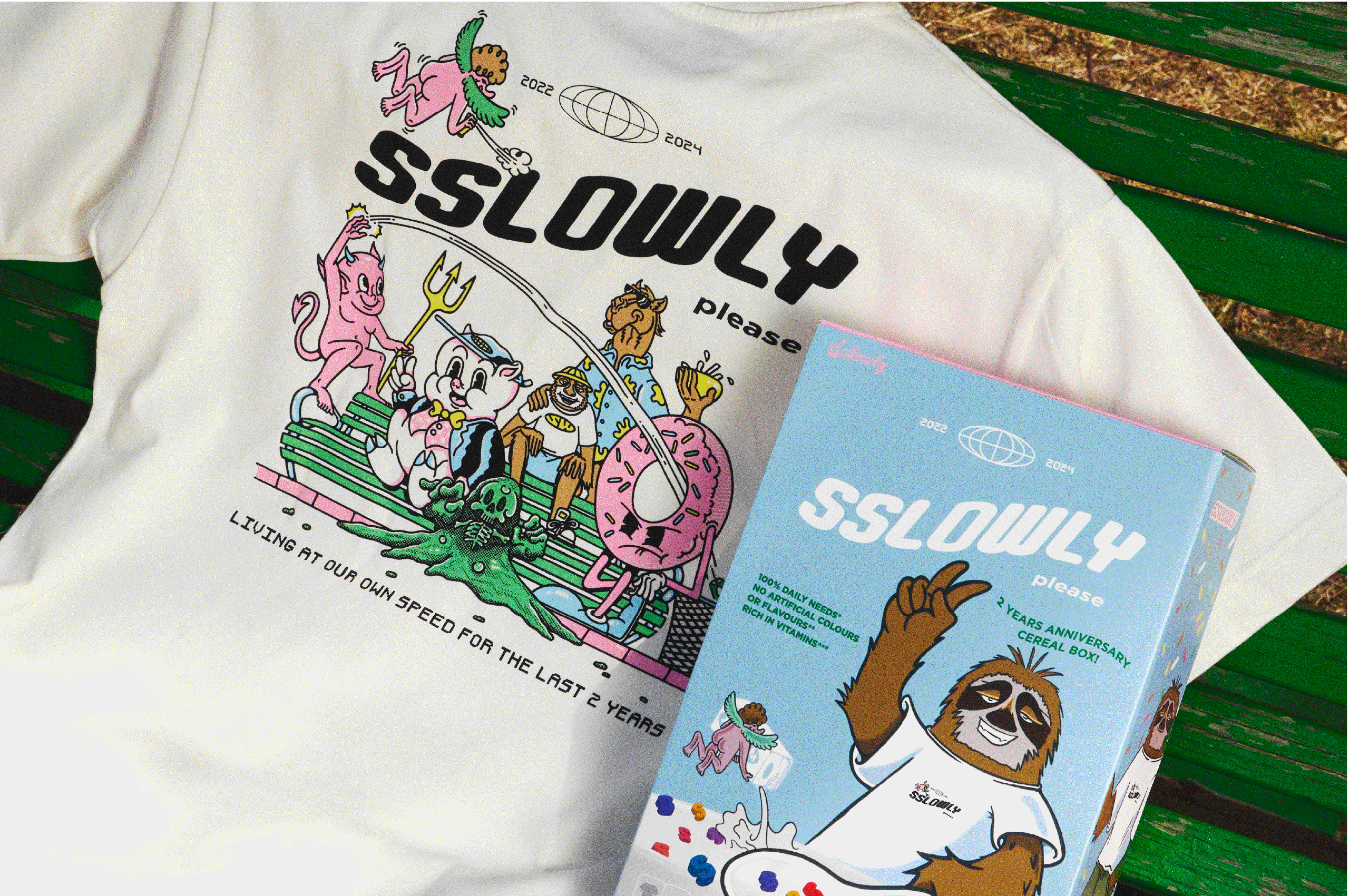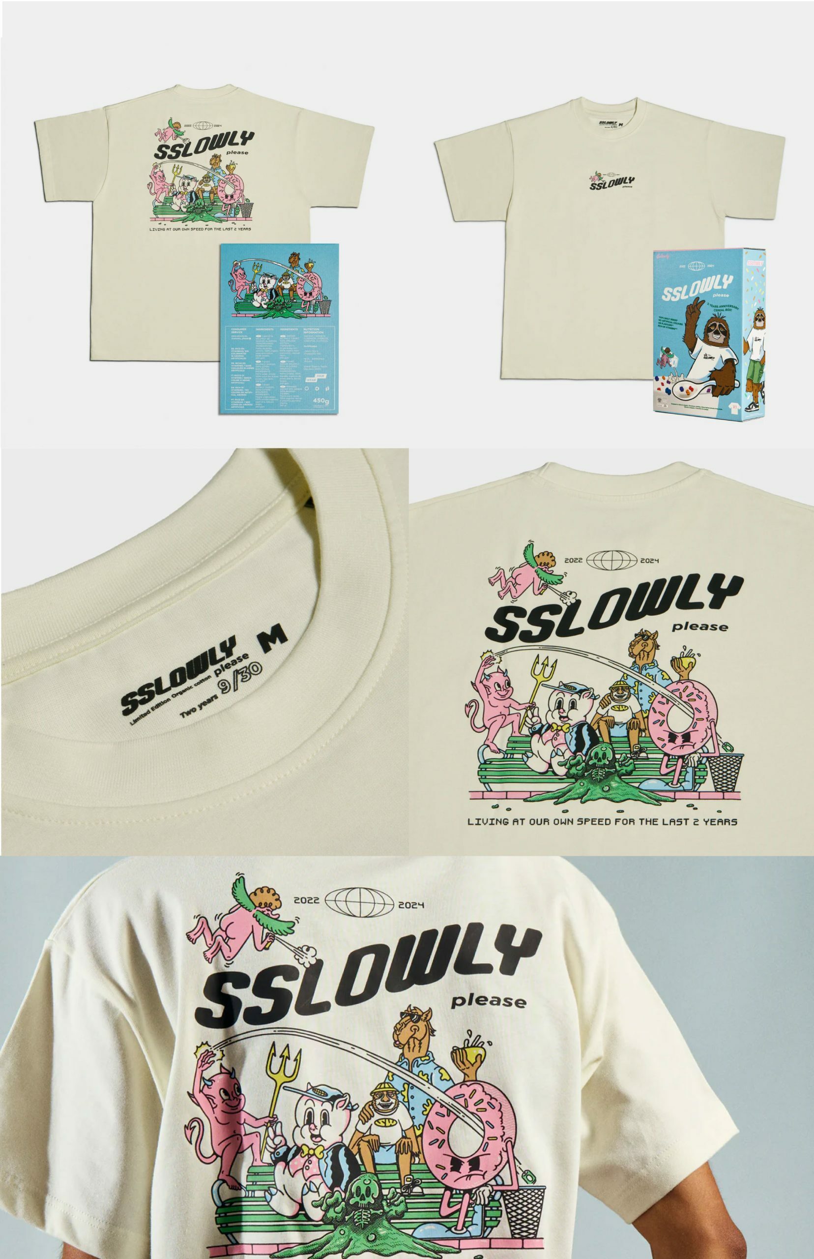 This project features a t-shirt illustration design created to celebrate the second anniversary of the independent brand SSLowly Please.